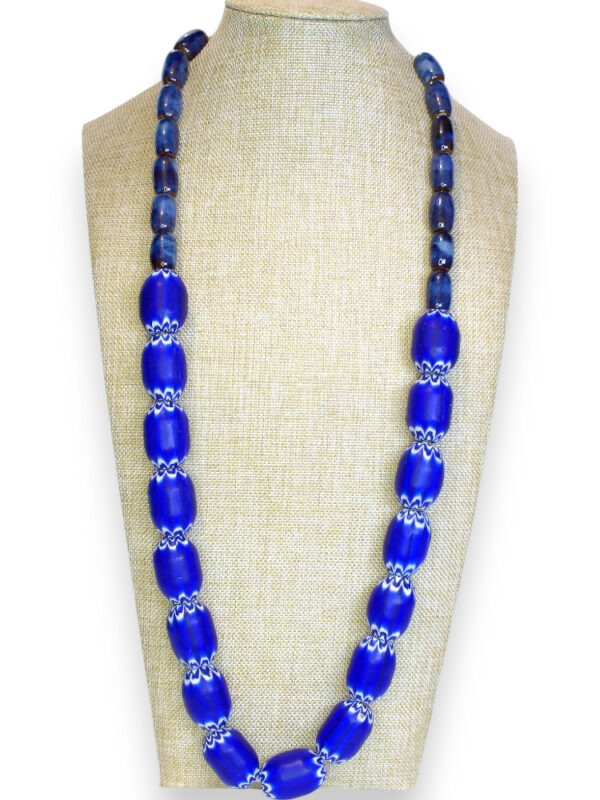 Ce collier maxi, inspiré des ornements royaux, incarne la grandeur et l’élégance intemporelle. Composé de perles vénitiennes de grande taille, allant de 20 à 45 mm et pesant jusquà 72 g chacune, ce bijou impressionne par son allure imposante et son raffinement exceptionnel. Chaque perle, façonnée avec un savoir-faire artisanal d’exception, brille de teintes profondes et de finitions éclatantes, faisant de chaque pièce une véritable oeuvre d’art, héritage des maîtres verriers. Conçu pour les grandes occasions, ce collier rare s’impose comme une pièce maîtresse, parfaite pour sublimer des tenues de prestige. Son design majestueux attire tous les regards, affirmant une présence forte et élégante. Plus qu’un bijou, cest une déclaration de style et de noblesse, idéale pour célébrer les moments les plus mémorables avec distinction., 16 maxi perles de 40 mm chacune, bleu-blanc, 14 perles de porcelaines 14 X 20 mm bleu. Finition argent, 86 cm, 86 cm.